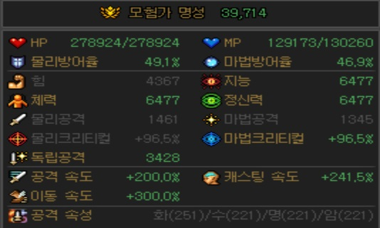 공속과 이속은 이번시즌에 생긴 스탯 한계치 맥스를 찍네요