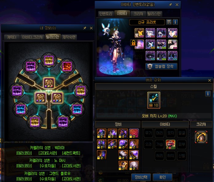 3) 버프강화 : LV을 MAX까지 채워야 합니다. 바칼레이드 채널에서 버프강화가 LV MAX라면 아바타가 하나 적든 크리쳐가 없든 괜찮습니다.