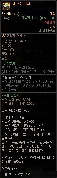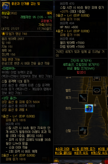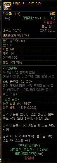 상의 - 브레이브 나이트 아머 ( 타격카운트 75 쿨회 +21퍼, 모든속도 +10퍼)