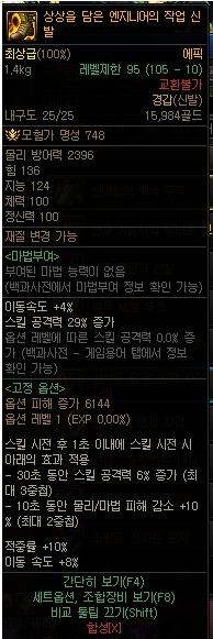 신발 - 상상을 담은 엔지니어의 작업 신발 ( 스킬 연속시전시 스증 18퍼, 피감 20퍼) < 어느셋팅 가든 이건 꼭 챙길듯