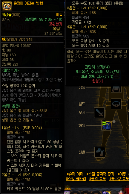 목걸이 - 운명이 이끄는 방향 ( 구에픽 - 모속 15, 스증 7퍼, 모든속도 10퍼 < 타격카운트 유지시 )