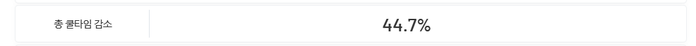 이미 쿨감 많이 간사람 던담기준(구간제외) 쿨타임 감소 40%이상+ 쿨타임 회복 20%이상이신분들은 거의 과쿨감입니다. 아포타임때 던담딜 처럼 넣기 힘들어요