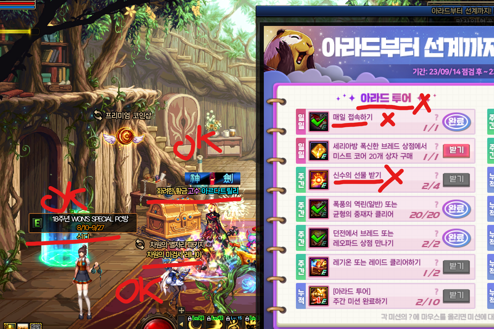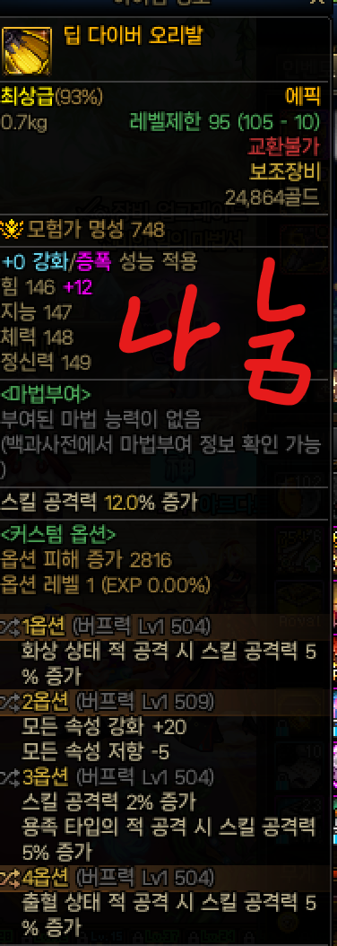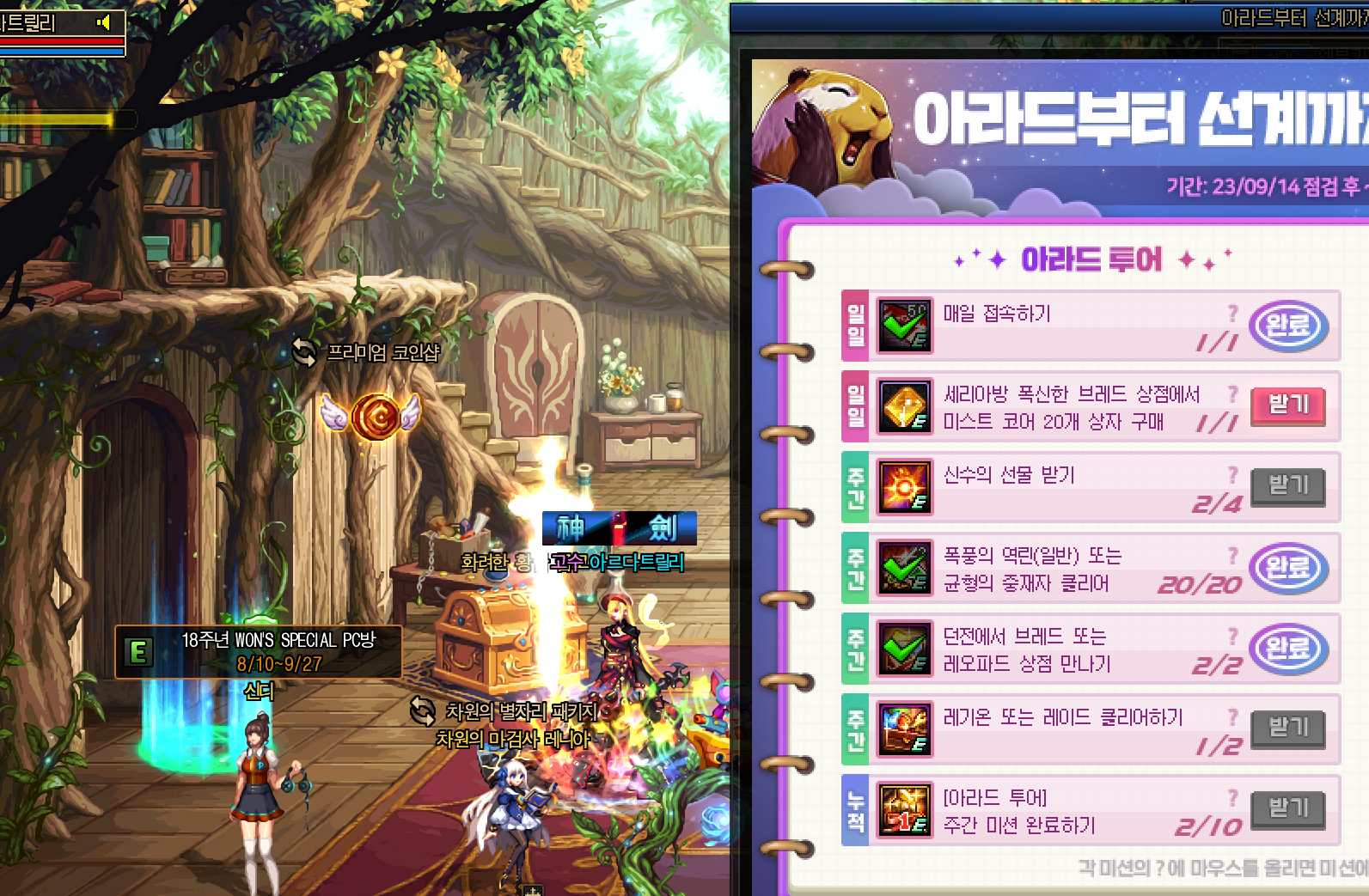 저런 이벤트 창이나, 아이템 툴팁, 어드벤처 출전 가능! 등..