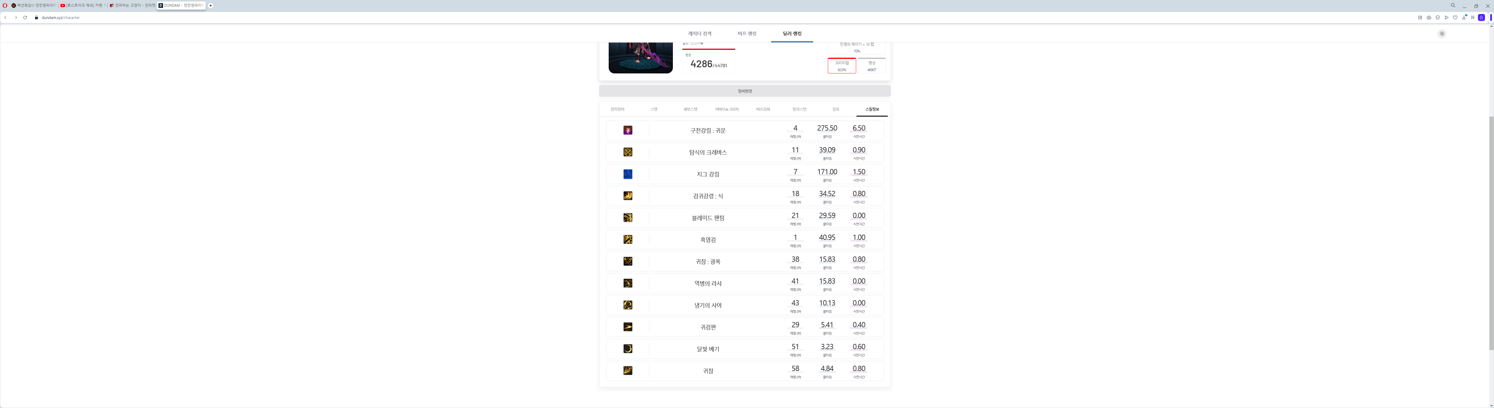 옛날엔 던파 오픈API를 이용한 사이트가 상당히 많았는데 지금은 많이 줄어들고 몇개 남지 않은 상황에