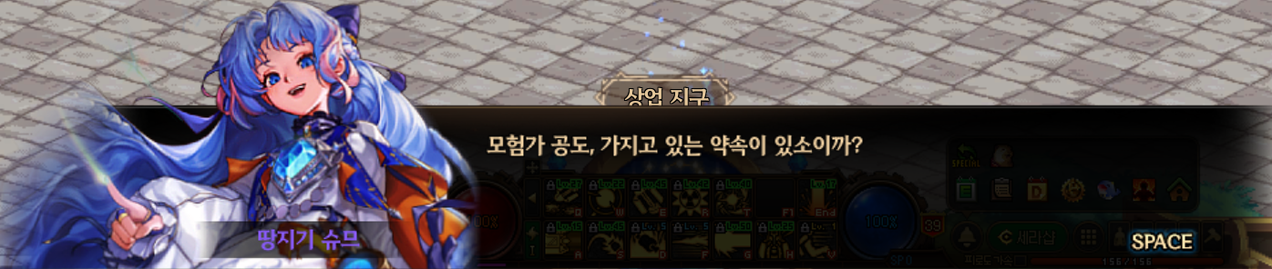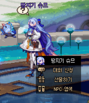 80% 호감도 이후 마을에서 슈므 와 대화를 하다 보면 저렇게 모험가를 찾는 말풍선이 나옵니다.