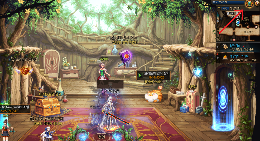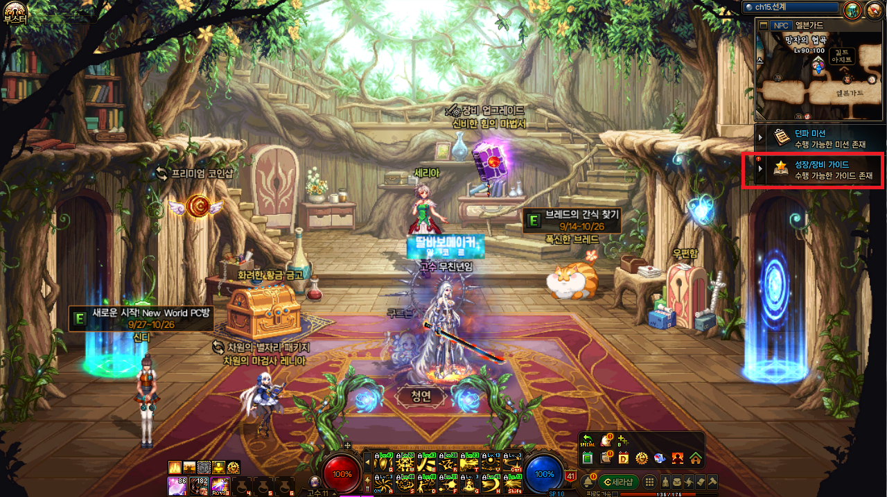 왼쪽 아래에 명성에 따른 가이드들이 위치 해 있을겁니다.