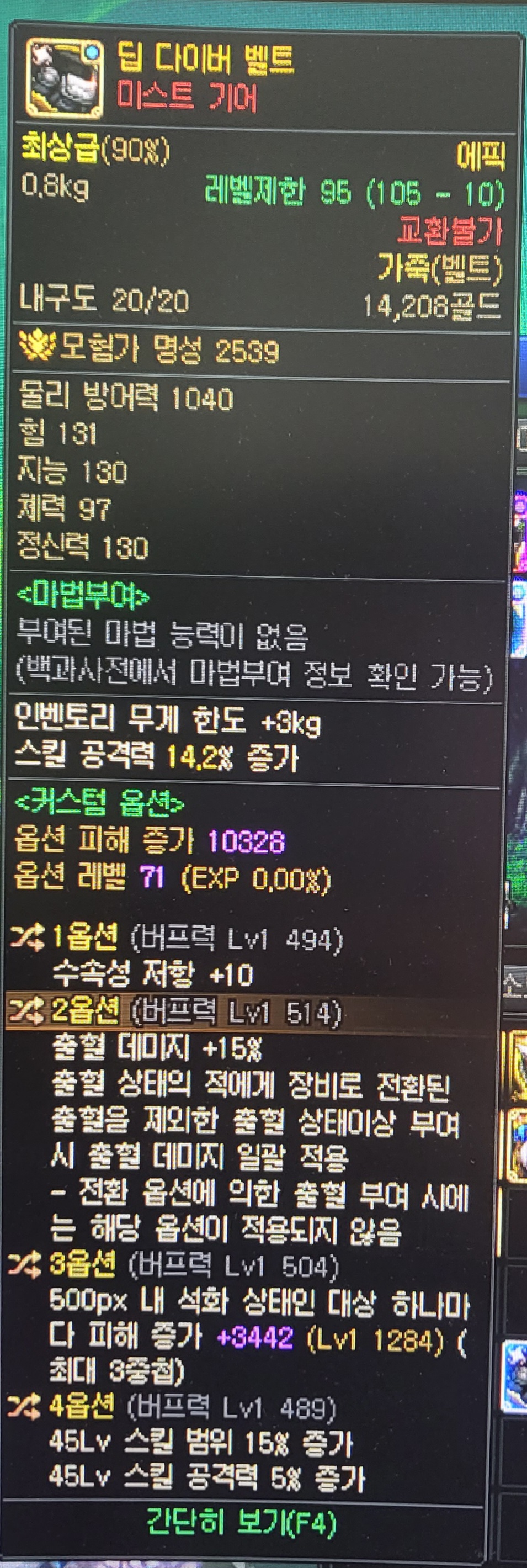 [여넨마스터] 미스트기어(딥다이버벨트) 먹었는데 옵션을 어떻게..? (11)