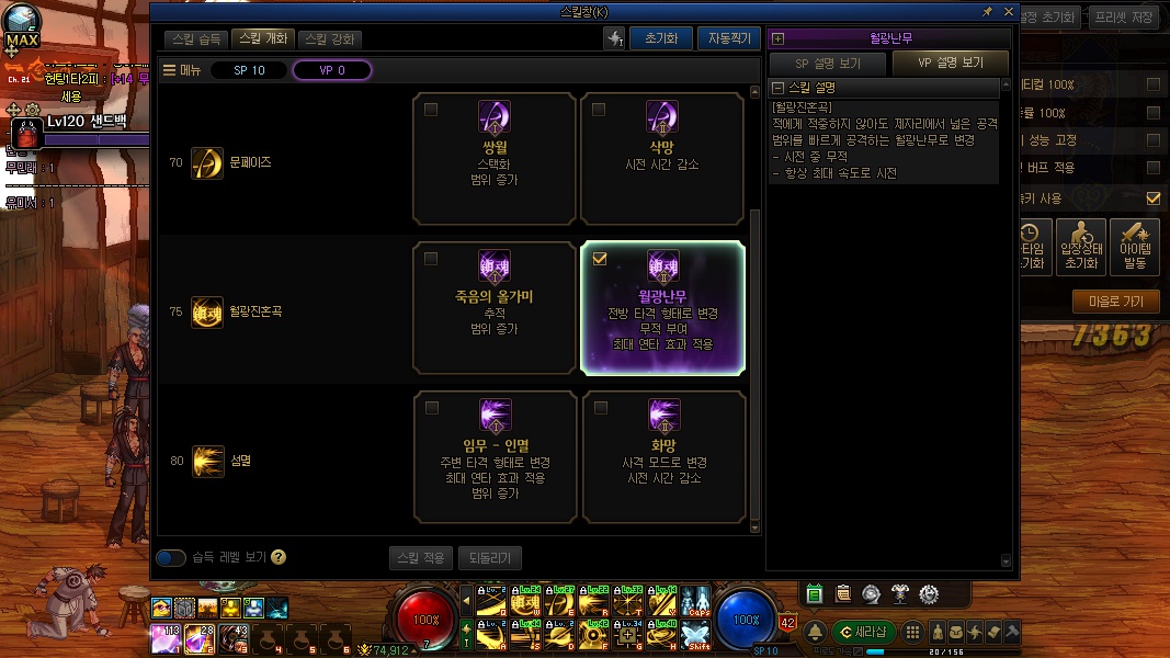 보름달베기를 사용함과 동시에 컷 앤 샷 스킬로 후딜레이를 캔슬한후 암월비보를 사용한 모습