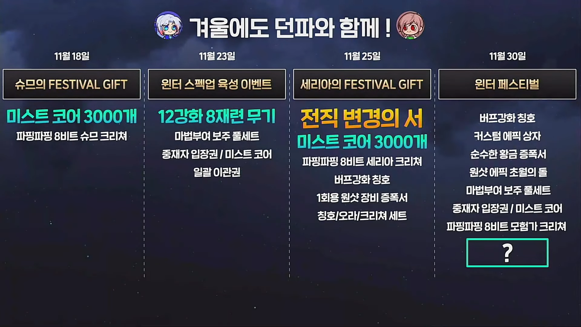 올해에는 전직 변경의 서, ? 등. 최초로 제공되는 것들이 많네요.