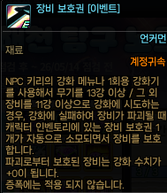 장비 보호권이 있는데 이는 고강화 시도시 실패하더라도 무기가 터지지 않도록 해주는 템입니다
