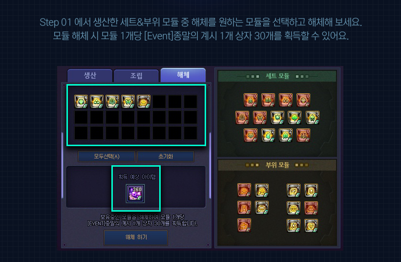 제작하신 모든 모듈은 목요일 정기점검시 초기화되기에 점검하기 전, 매주 수요일마다 남은 모듈을 제거해서 종말의 계시로 바꾸셔야합니다