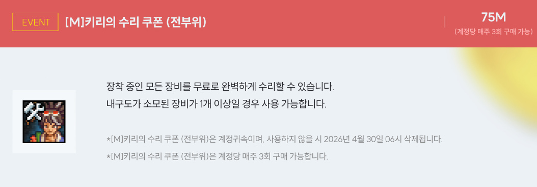 13강화권이 있는데 점핑 이벤트에서 주는 무기는 12강이기에 이게 좀 더 데미지가 높습니다