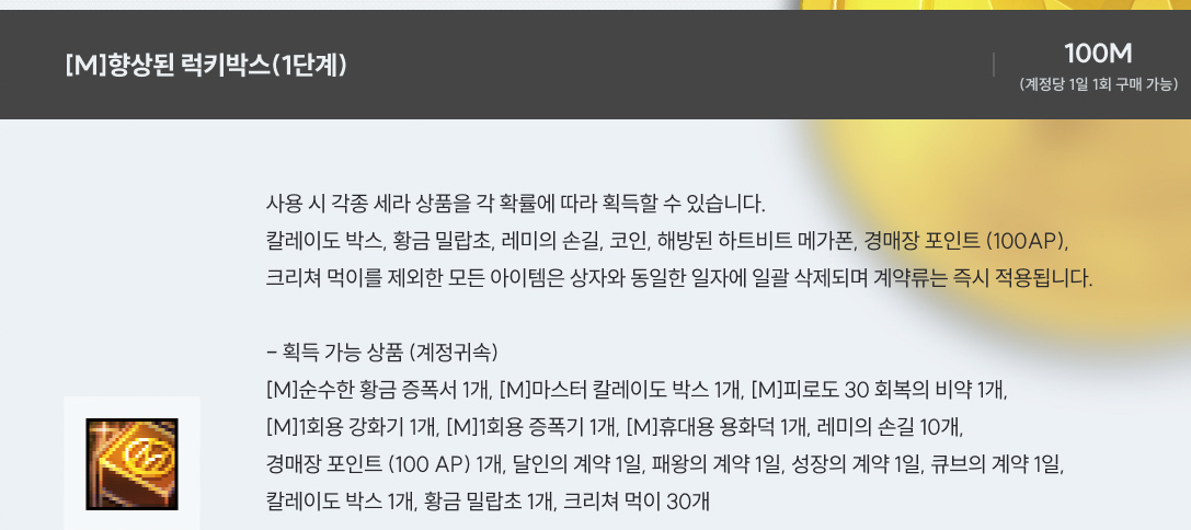 2순위:주간 품목인 역병의 싹, 종말의 계시, 칼레이♡♥♥♡스, 수리쿠폰