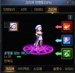이는 인벤토리 크리쳐탭에서 장착해주시면 됩니다