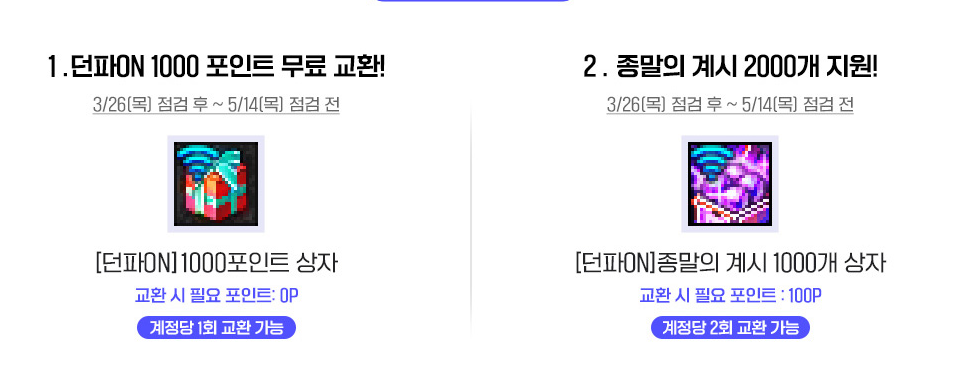 계정당 1회에 한해서 포인트 교환소에 1000포인트 주는 상자 파는 이벤트도 진행중이에요