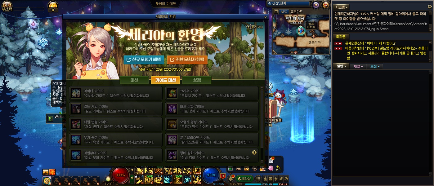 세리아의 환영 가이드미션 활성화안되는데요