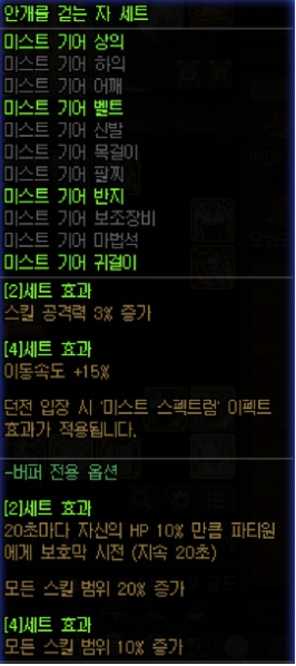 미스트기어 4부위 안개를 걷는자 4세트 효과를 받아 봤습니다.