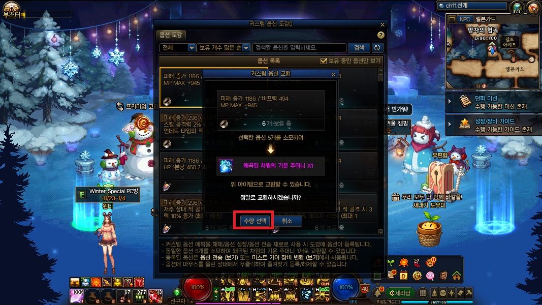 이러한 커스텀옵션 5개를 쓰면 큐브를 얻을 수 있는 재료를 준답니다.