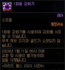 아라드 패스나 다른 이벤트로 받은 1회용 강화기가 있다면 이용하면 강화비도 절약 가능