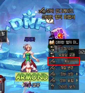 신비한 힘의 마법서에서 '계승'을 눌러줍니다.