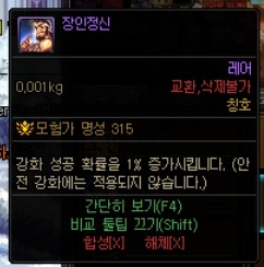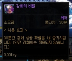 경매장에서 '강화의 비밀'을 검색하고 구매하여 사용하면 30분간 강화 성공 확률 1% 상승