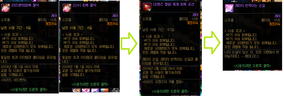 [어드벤처] 회복 물약과 [신수] 회복 물약은 매달 사라지는 특징이 있고