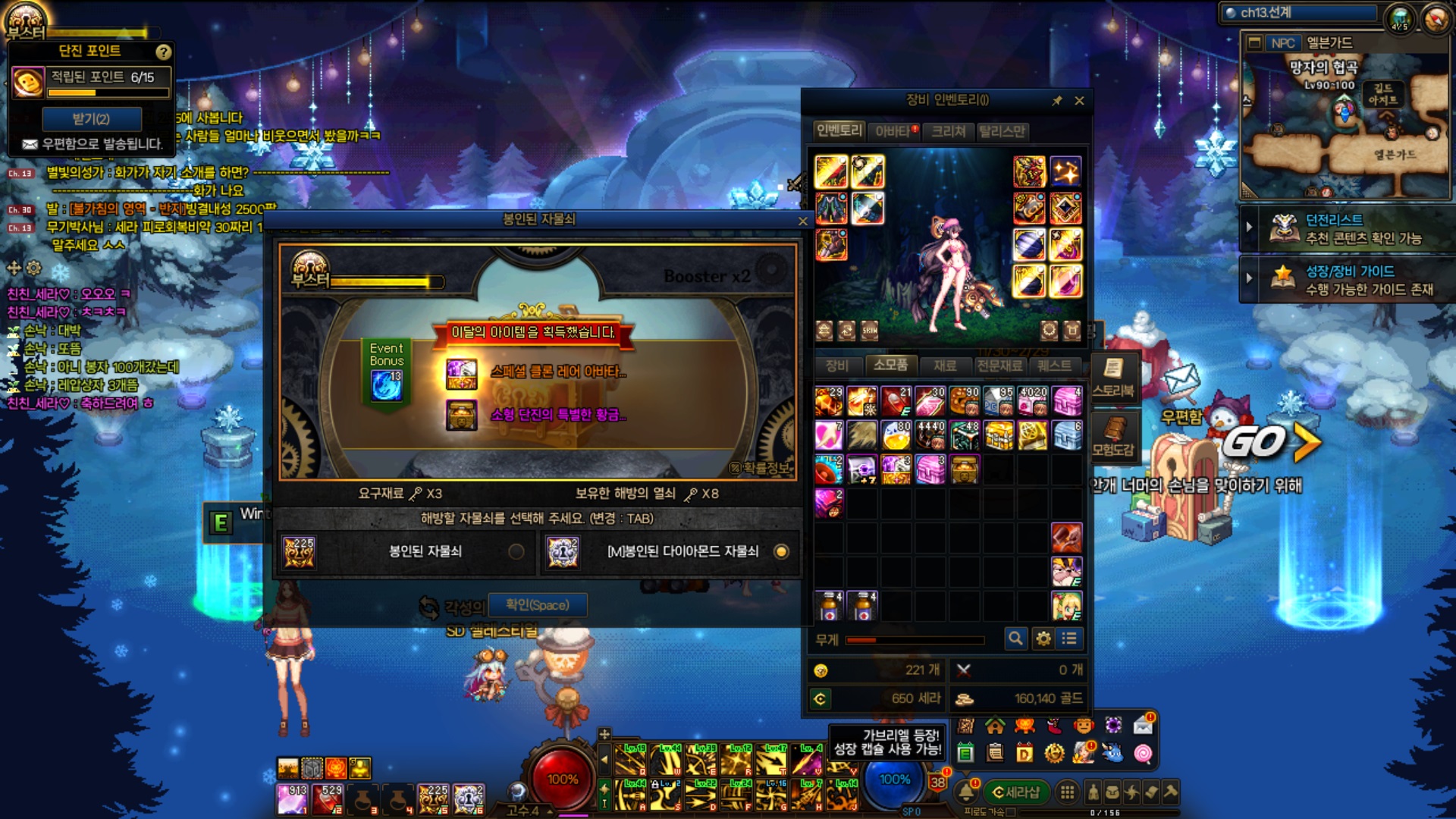 봉자 80개로 클론레압풀세트상자3개 소형단진상자1개 순황증1개 먹어서