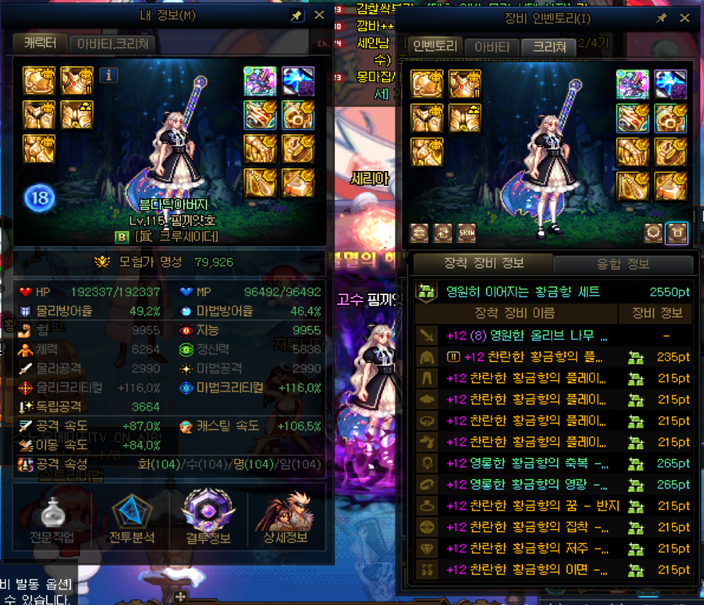 <길마 사냥 스펙 / 길마 결장 전적 >