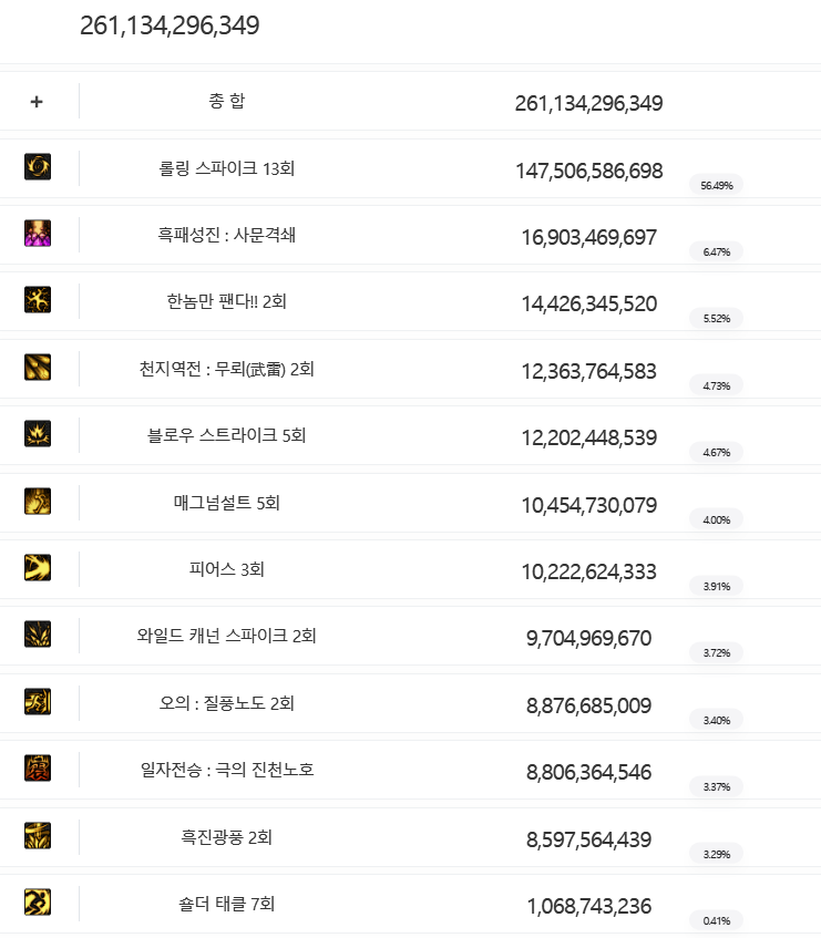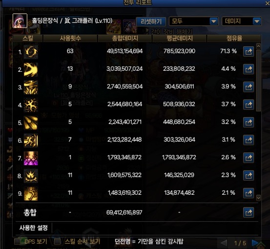 전체 데미지 약 69억 중에