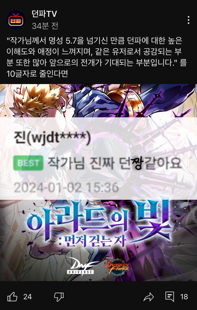 던파TV 왈 명성 5.7 밑으로 고개를 조아려라!
