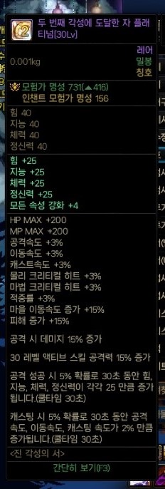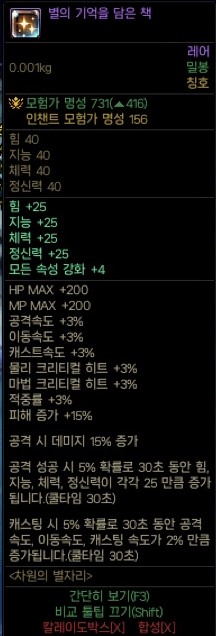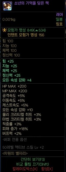 ex2) 별의 기억을 담은 책(깡스탯 낮음, 피해증가 +15%, 데미지 증가 +15%), 소년의 기억을 담은 책(깡스탯 높음, 피해증가+18%)
