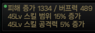 45스킬범위 15%증가/ 45스킬 공격력 5% 증가