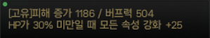 [2] 속성 강화 (최대 3종류), 5회 공격시 피해증가 +1292 방어력 -500 최대 (10중첩)