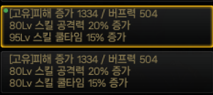 80스킬범위 15%증가/ 80스킬 공격력 5% 증가