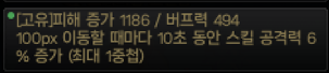 -100px 이동 할때 마다 10초 동안 스킬공격력 6% 증가