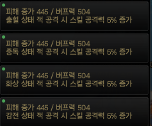 [2] 출혈/화상/감전/중독 상태 적 공격 시 스킬 공격력 5% 증가,