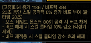 -쿨타임 10% 감소, 80회 공격시 쿨타임 감소 옵션 해제, 스킬공격력 5% 증가