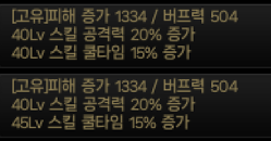 40 스킬 공격력 20% 증가 / 40스킬 쿨타임 15% 증가
