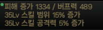 35스킬범위 15%증가/ 35스킬 공격력 5% 증가