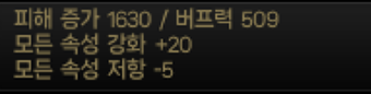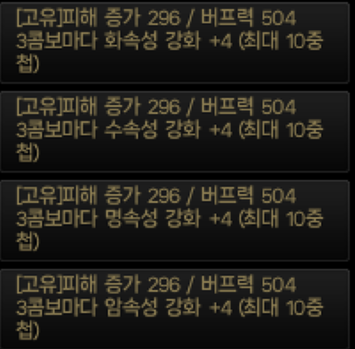 단일 속성강화 20과 모속강18도 보조옵션이나 위의 옵션들과 비교하면 좀 아쉬운 부분입니다.