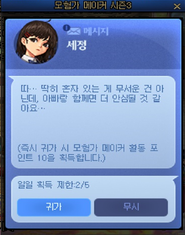[공통] 모험가 메이커 시즌3에서 딸 아이의 경우 모험가의 성별에 따라서 문자 보내는게 달라집니다.
