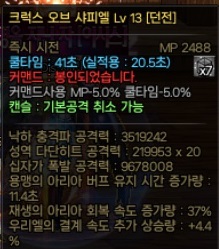전제조건으로 무한 아리아를 위해서는 쿨초 옵션이 달린 신수 로그 선택이 필수입니다.