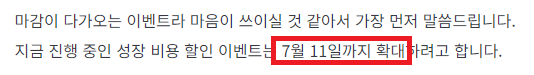 0. 성장 90퍼 할인 이벤트 연장