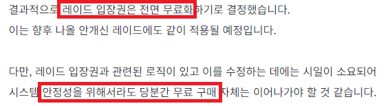 7. 레이드 입장권 전면 무료화