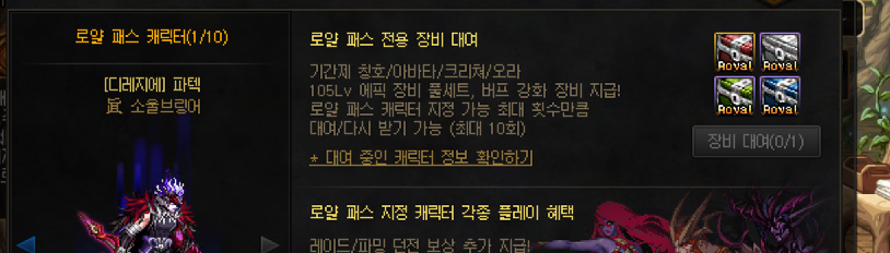 로얄패스 캐릭터를 늘려야 장비대여 횟수가 늘어나는건가요?
