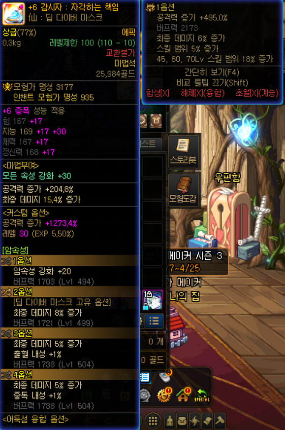 첫번째 사진을 보시면 딥 다이어 이어링 2옵션에 증뎀 6% 증가라는 옵션이 있고,