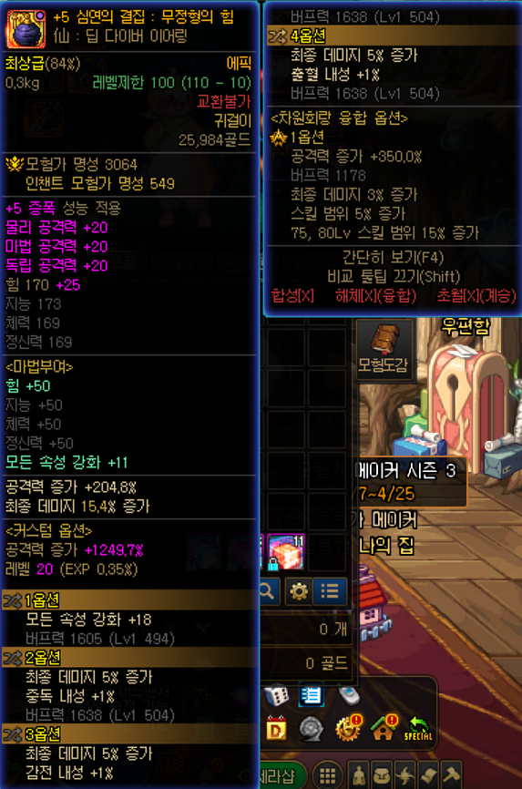 증뎀 5퍼 2줄 + 모속 or 단속 ← 이런 형식의 옵션이 나왔을 경우엔, 증뎀 5퍼를 넣어주는게 좋습니다. 모속 or 단속은 넣지마세요! 꼭! 증뎀 5퍼 넣기!