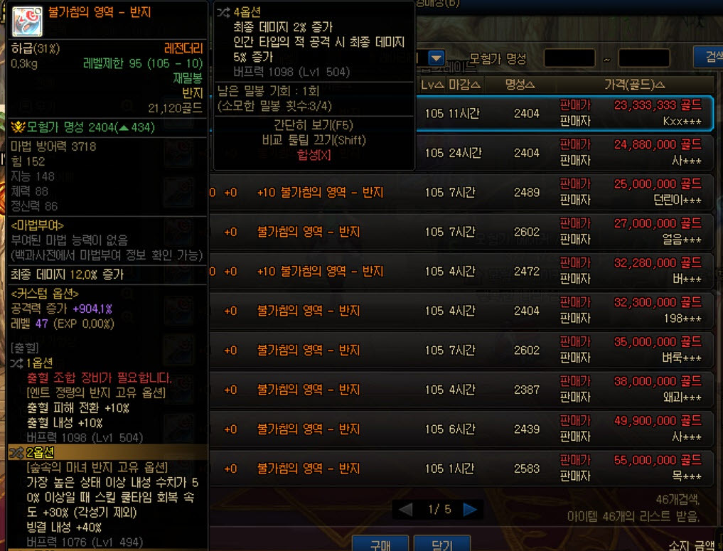 빙결내성40% 옵션이 포함된 반지가 검색됩니다.