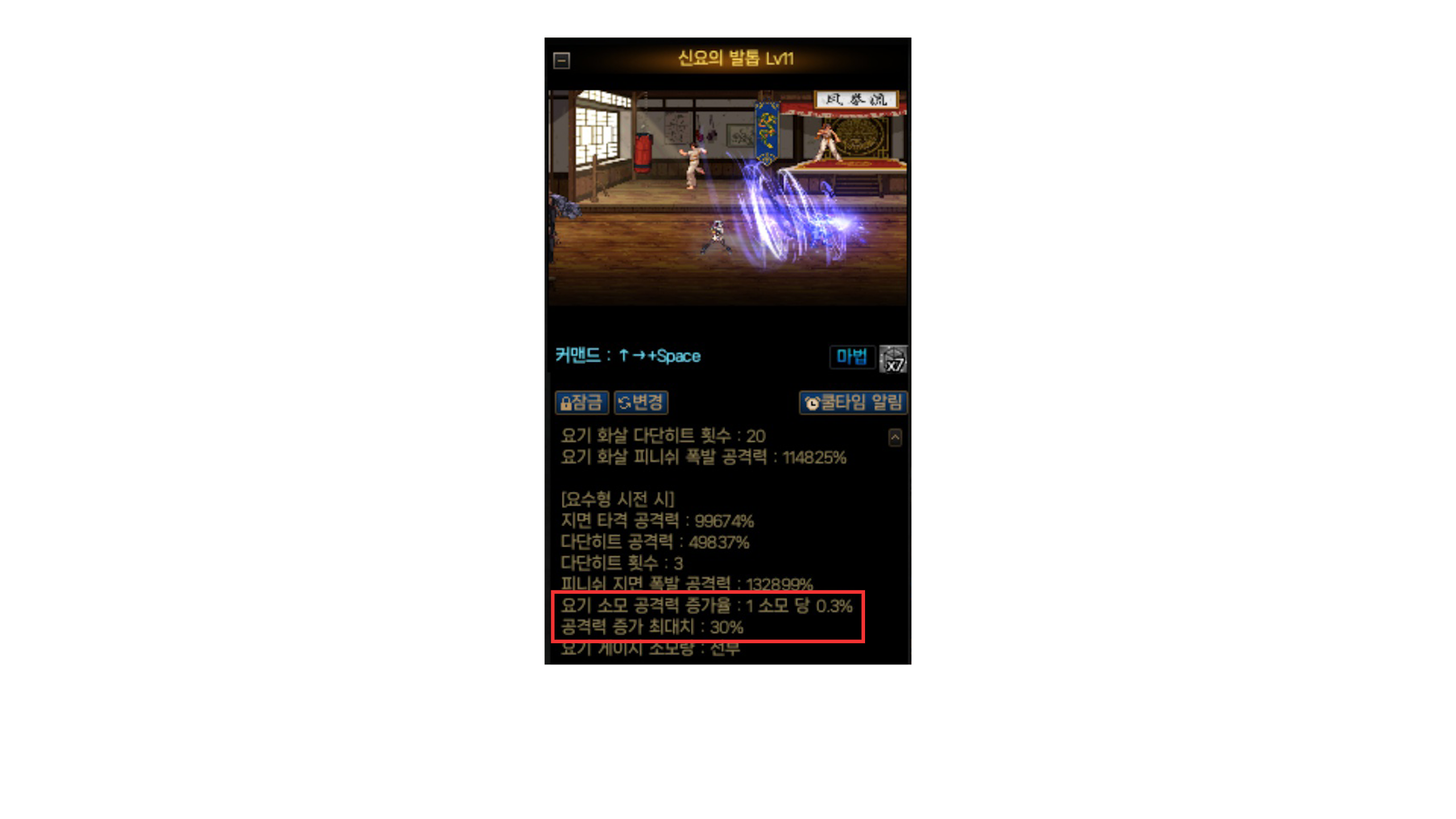 요기 100상태에서 시전시 존재하던 강화버전이 삭제되었습니다