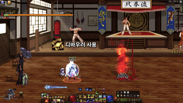 <도깨비 바람 시전 후 디바우러, 발골 사용 모습>